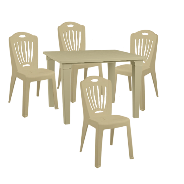 Ensemble table et 4 chaises plastique Meublez votre extérieur avec ce salon de jardin 4 places en plastique . Cet