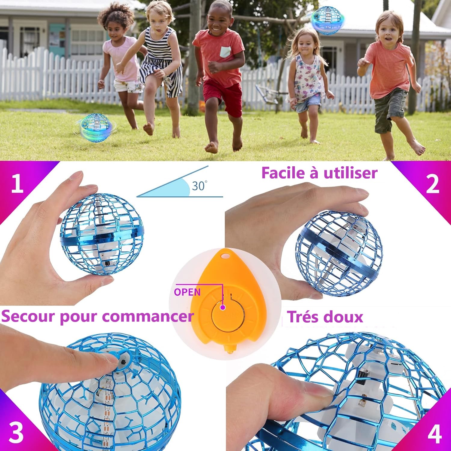 - Boule volante à LED, lumière colorée pour adultes et enfants