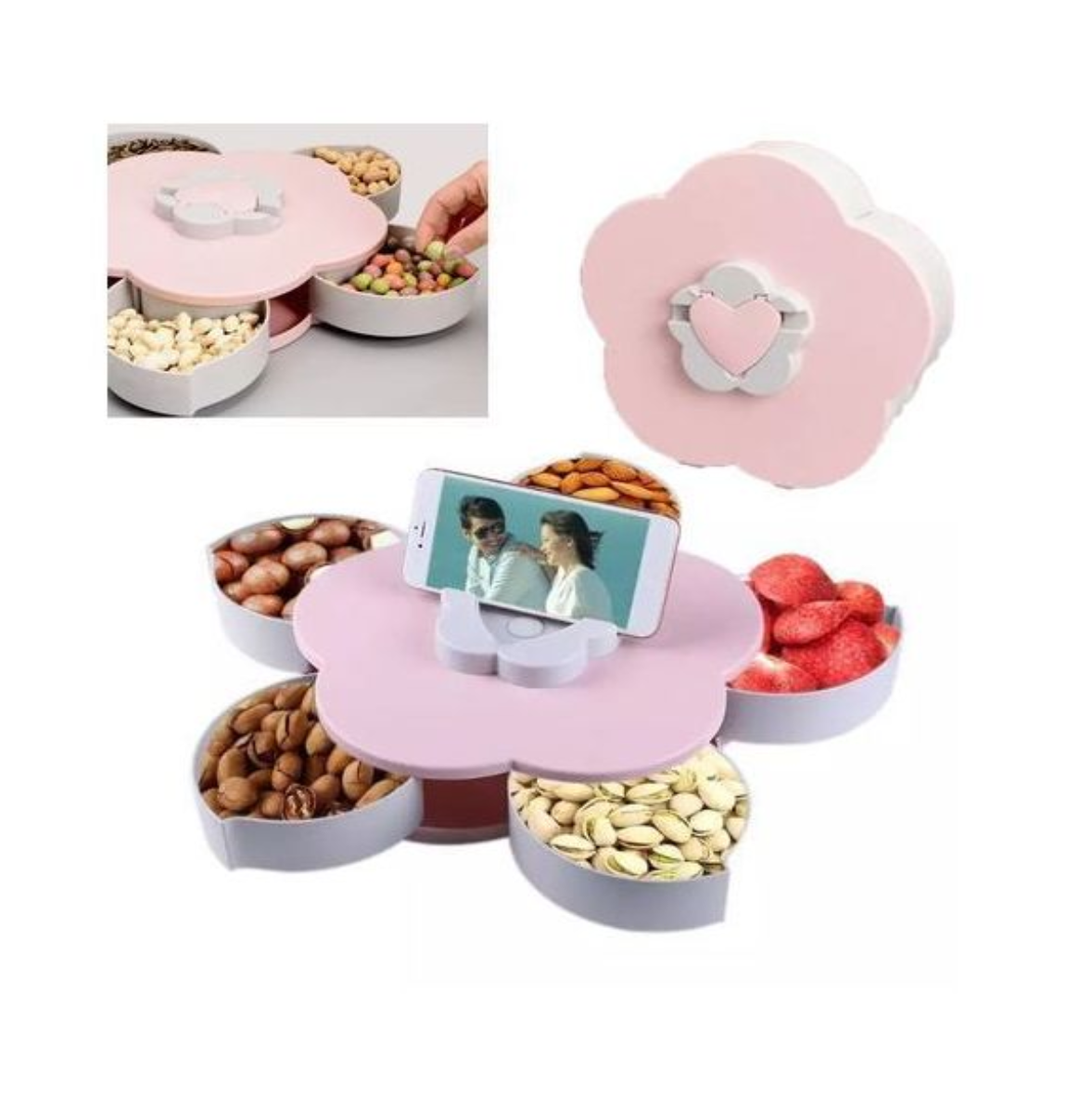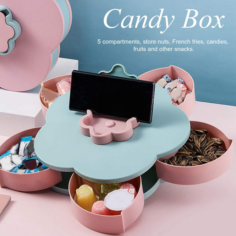 - La boîte de bonbons rotation fleur est conçue pour plusieurs compartiments, peuvent sortes de stockage de collations, et le stockage des aliments ne sont pas mélangés