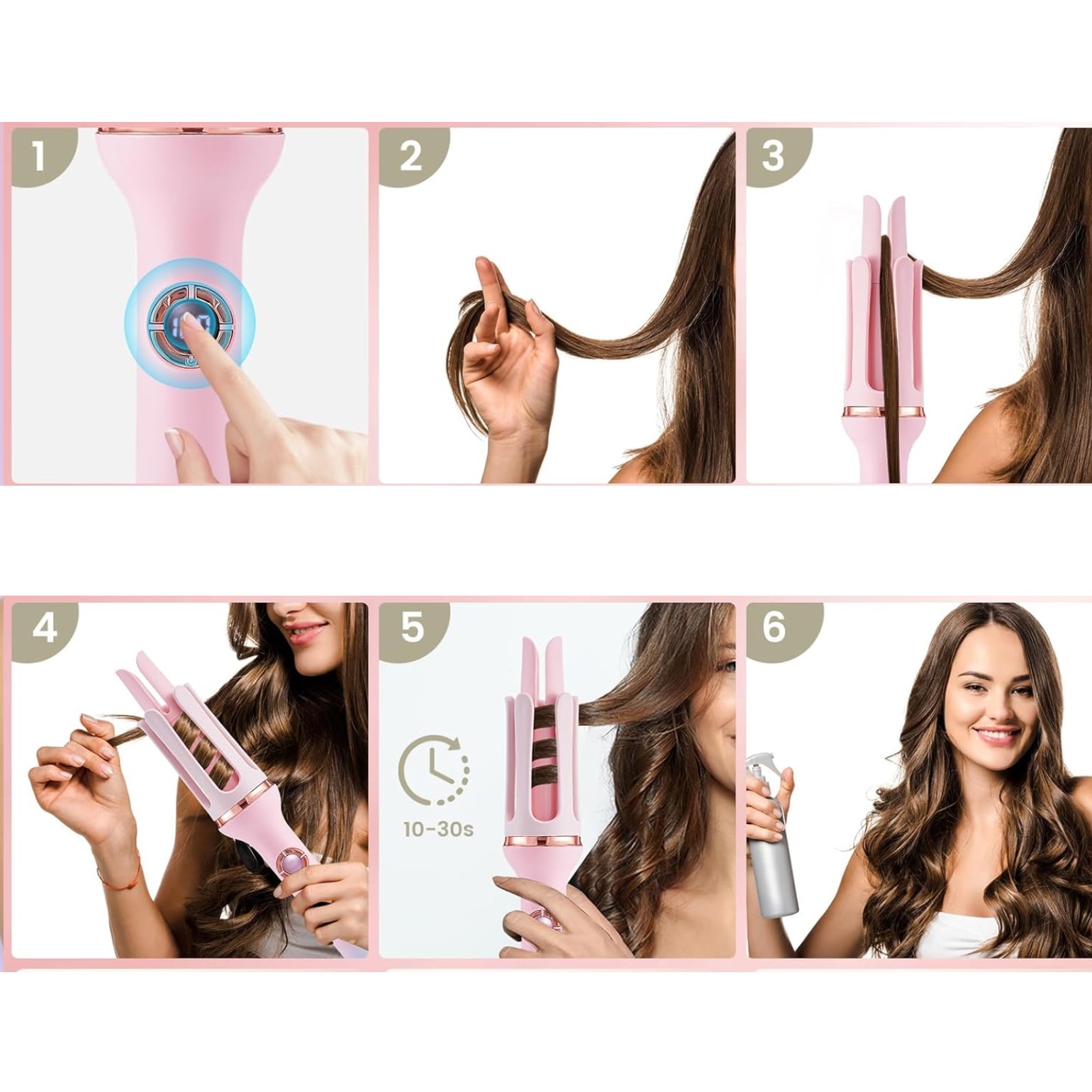 - Boucleur à Cheveux Automatique: adopte une conception de bouclage à une touche. Appuyez simplement sur le bouton et maintenez-le enfoncé pendant un moment pour créer de jolis cheveux ondulés. Aucune technique compliquée ou bouclage manuel n’est requis, ce qui permet d’économiser du temps et des efforts. Convient aux débutants et fait gagner plus de temps aux utilisateurs expérimentés.
