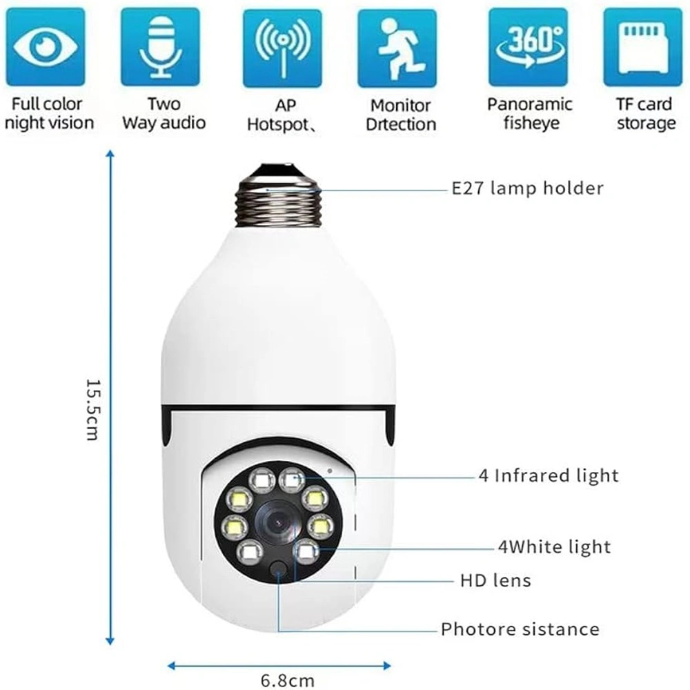 Caméra 360°, caméra ampoule Full HD 1080P, caméra Wifi caméra sans fil de détection de mouvement à vision nocturne, caméras de sécurité bureau, magasin, maison…