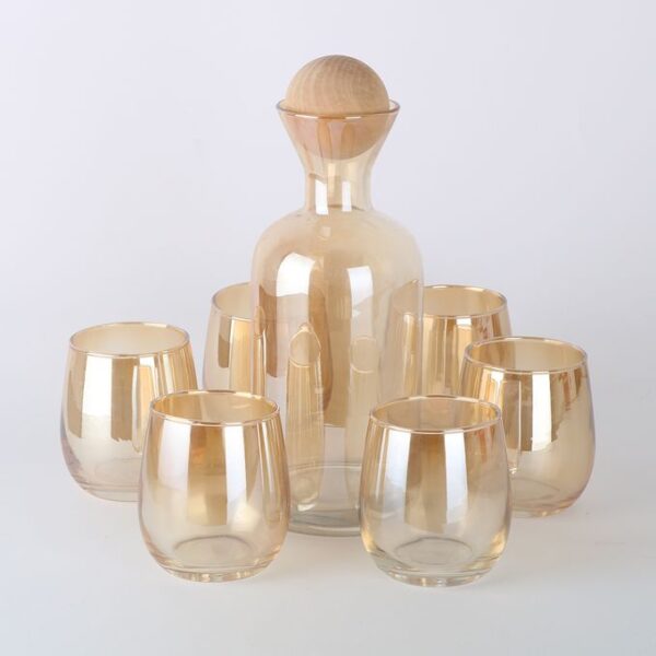 Service à Eau – 7 Pièces- Carafe de 1.5 L + 6 Verres ronds doré