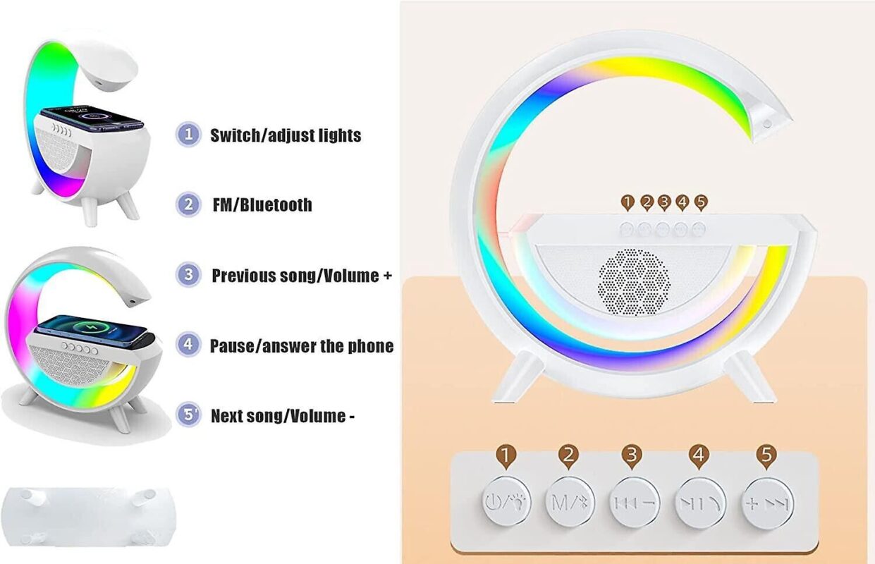 Enceinte Bluetooth Lampe D’ambiance RGB Audio et chargeur sans fil + USB / TF