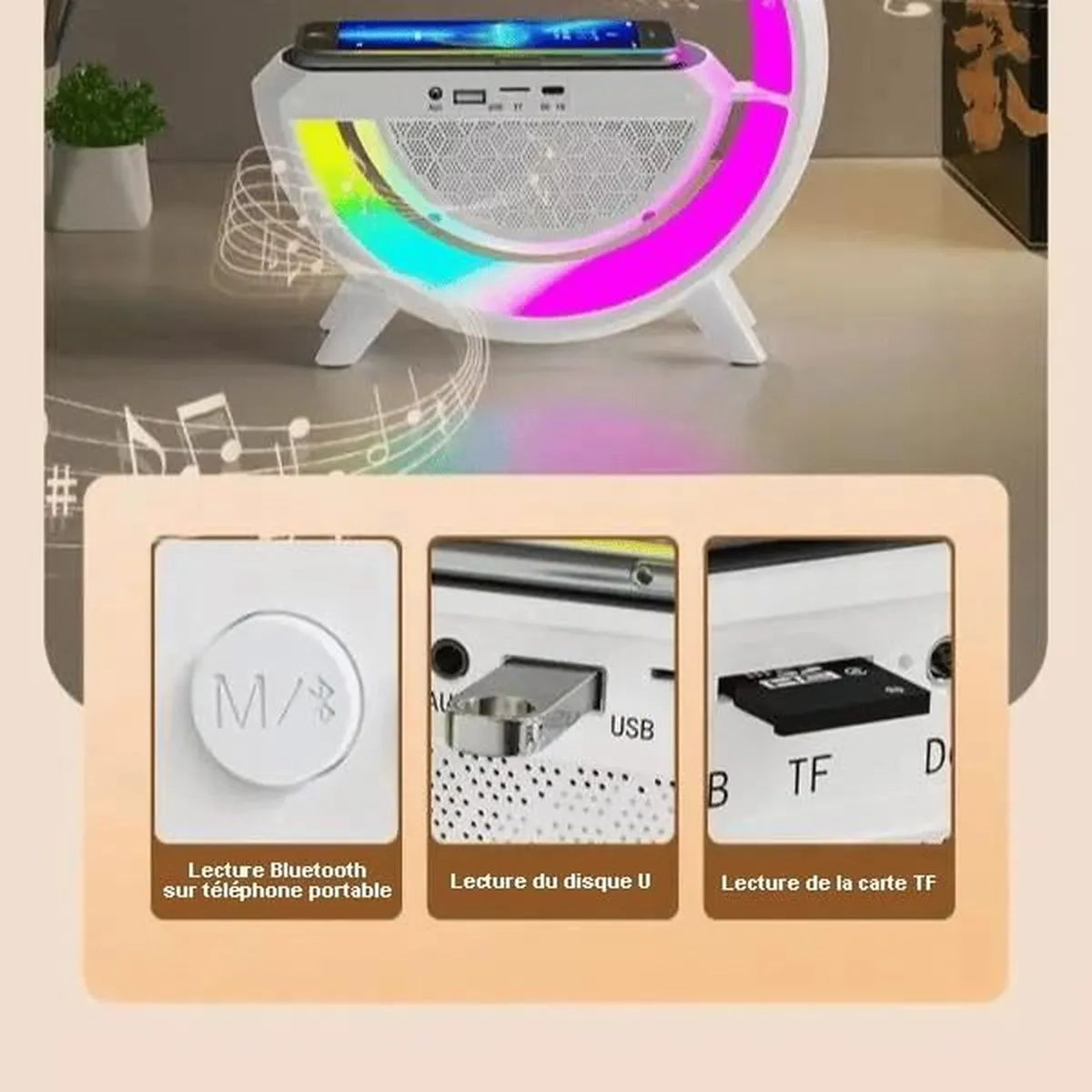 Enceinte Bluetooth Lampe D’ambiance RGB Audio et chargeur sans fil + USB / TF