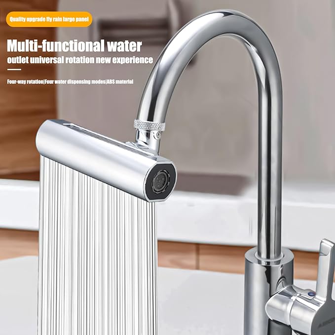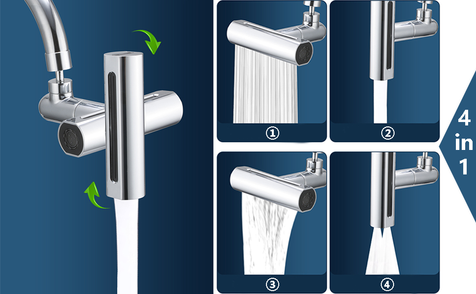 Extension de Robinet 360° 4en1l dispose quatre modes de sortie d’eau: la buse d’évier de cuisine dispose d’un mode de pulvérisation cascade, d’un mode pulvérisation de pluie, d’un mode bulle et d’un mode double Aquablade.