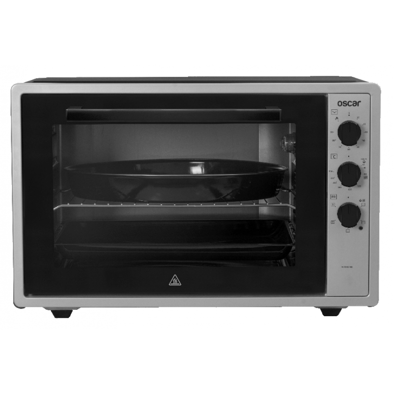 Four Electrique Oscar – Capacité 70L – Couleur Silver – 5x Fonctions de cuisson – Fonction Defrost – Fonction Yaourt – Fonction Nettoyage Vapeur – Minuterie – Cavité Emaillée – Double vitres – Chaleur tournante – Eclairage intérieur – 1 x Grille – 1 x Plateau Rond – 1 x Plateau Rectangulaire – Dimensions 68 x 45 x 51.5 cm – Garantie 1 an