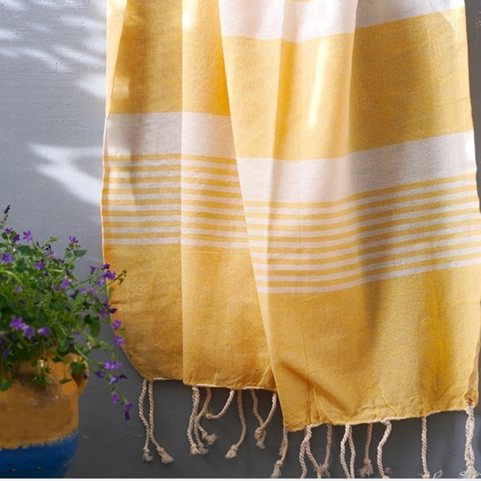 Appelée Fouta en Tunisie ou peshtamal en Turquie elle accompagne les gestes quotidiens du bain et de la détente… Également très pratique pour le soin des bébés ; sa légèreté et ses qualités absorbantes en font aussi le compagnon du voyageur moderne. Elle s’adapte selon les besoins en serviette, plaid, paréo, nappe, drap de massage… Sèche rapidement et se plie facilement dans un sac. - Composition 100% coton biologique