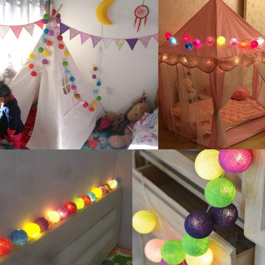 - Chaque boule est 100 % artisanale, 20 boules de coton sur la guirlande lumineuse.