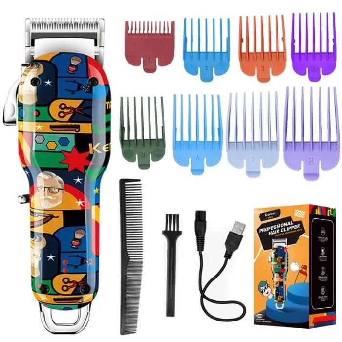 Tondeuse à cheveux professionnelle  pour homme sans fil de la marque KEMEI  tendance avec son design à graffiti, tondeuse à cheveux rechargeable, cadeaux pour papa, petit ami et mari.