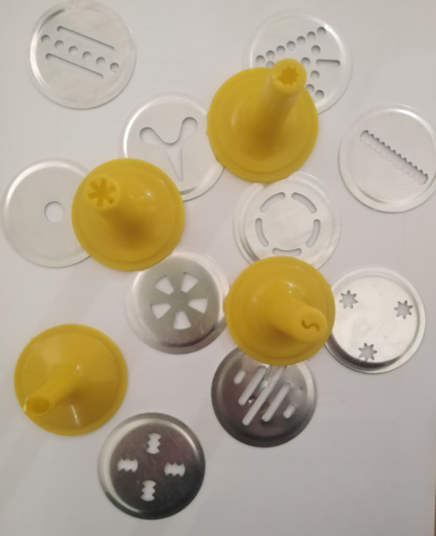 - Machine à biscuits. Pistolet, 10 disques de motif et 4 embouts.