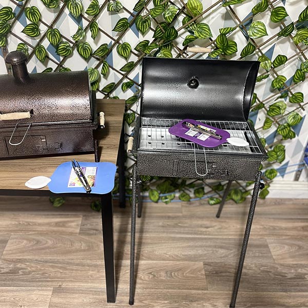 Pack Barbecue au charbon pieds démontables avec pince à barbecue et planche à découper