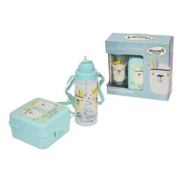 Renga Ensemble boite a goûter + bouteille d’eau en plastique alimentaire vert d’eau