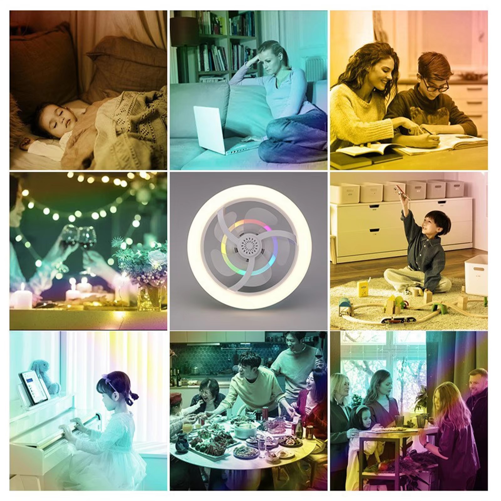 Plafonnier LED RGB Ventilateur Intégré 360°