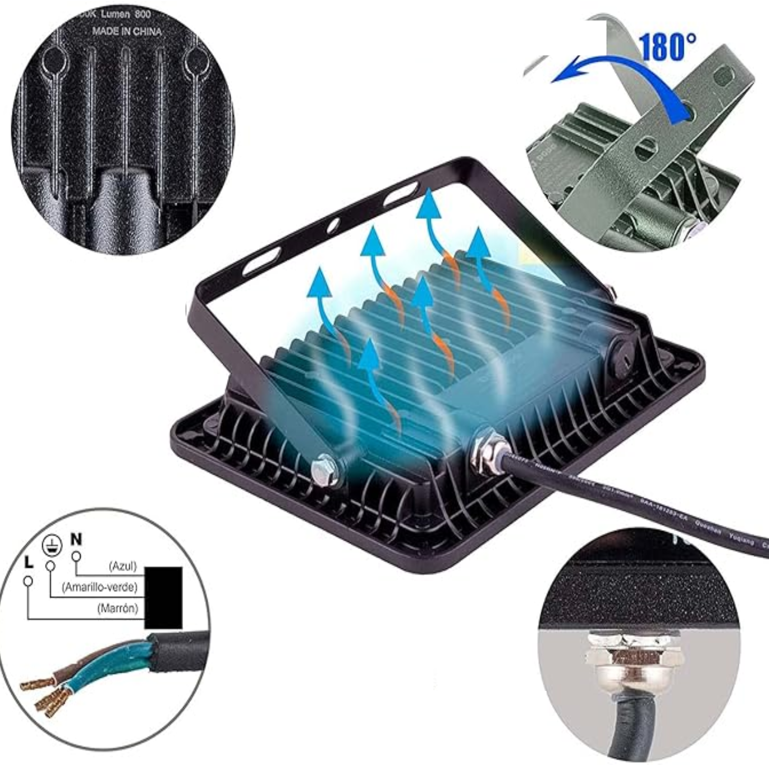 - Composants inclus: 1 x Projecteur LED 50 W 6500 K IP66