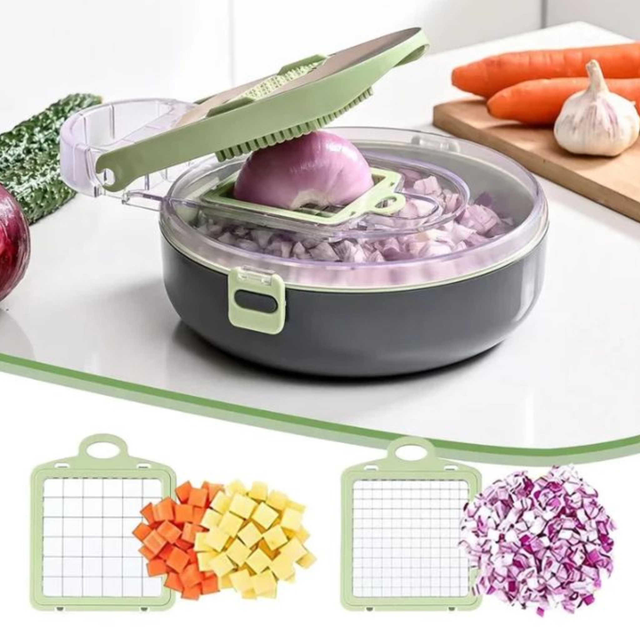 • Excellente qualité : coupez, coupez ou râpez avec ce hachoir à légumes et trancheuse multifonction. Ce hachoir à légumes est un outil de cuisine pratique, le hachoir à légumes offre de multiples fonctions dans un gadget de cuisine extrêmement polyvalent. Le hachoir à oignons est fabriqué à partir de matériaux de haute qualité tels que des lames en acier inoxydable et des matériaux de qualité alimentaire. Le coupe-légumes peut couper la plupart des types de légumes et de fruits.