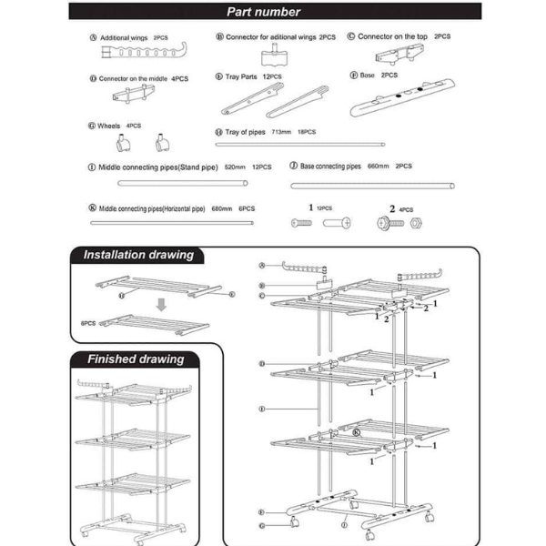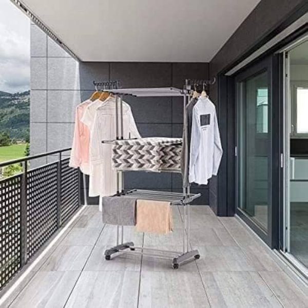 - Séchoir à linge à 3 niveaux avec 2 ailes latérales.