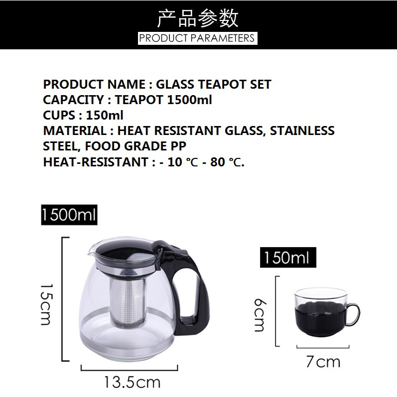 Pot de thé : Fabriqué à partir de haute qualité PP Top, verre, filtre amovible et un bec verseur sans goutte pour un versement sûr et facile.