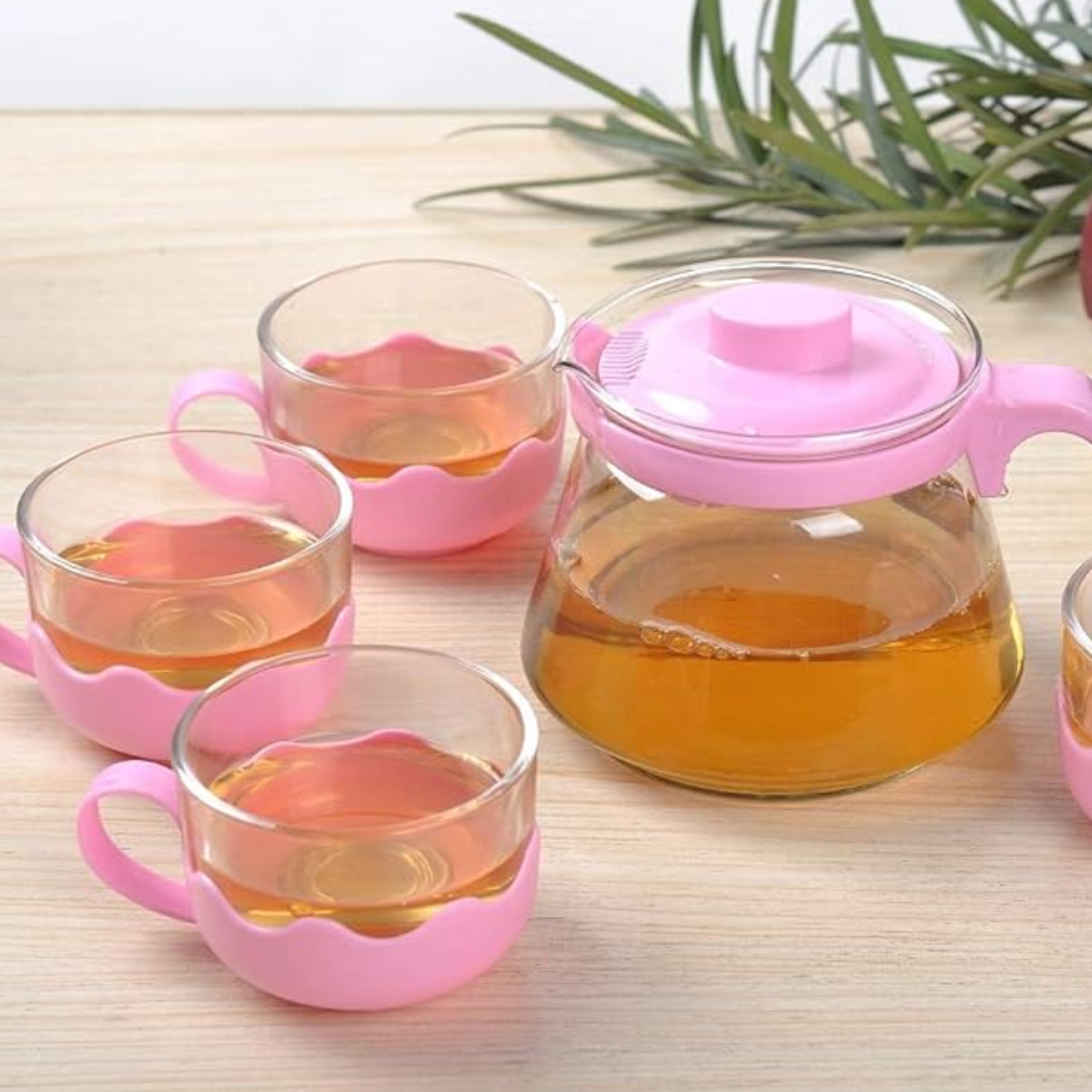 Service théière avec 4 tasses en verre -ROSE