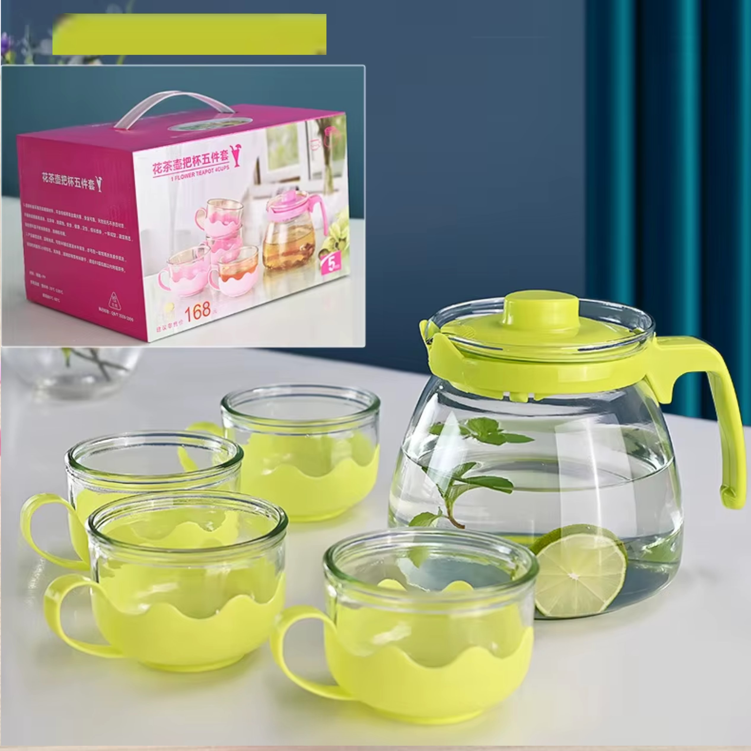 - Ensemble de thé en verre de 5 pièces : 4 tasses à thé , théière (700ml)