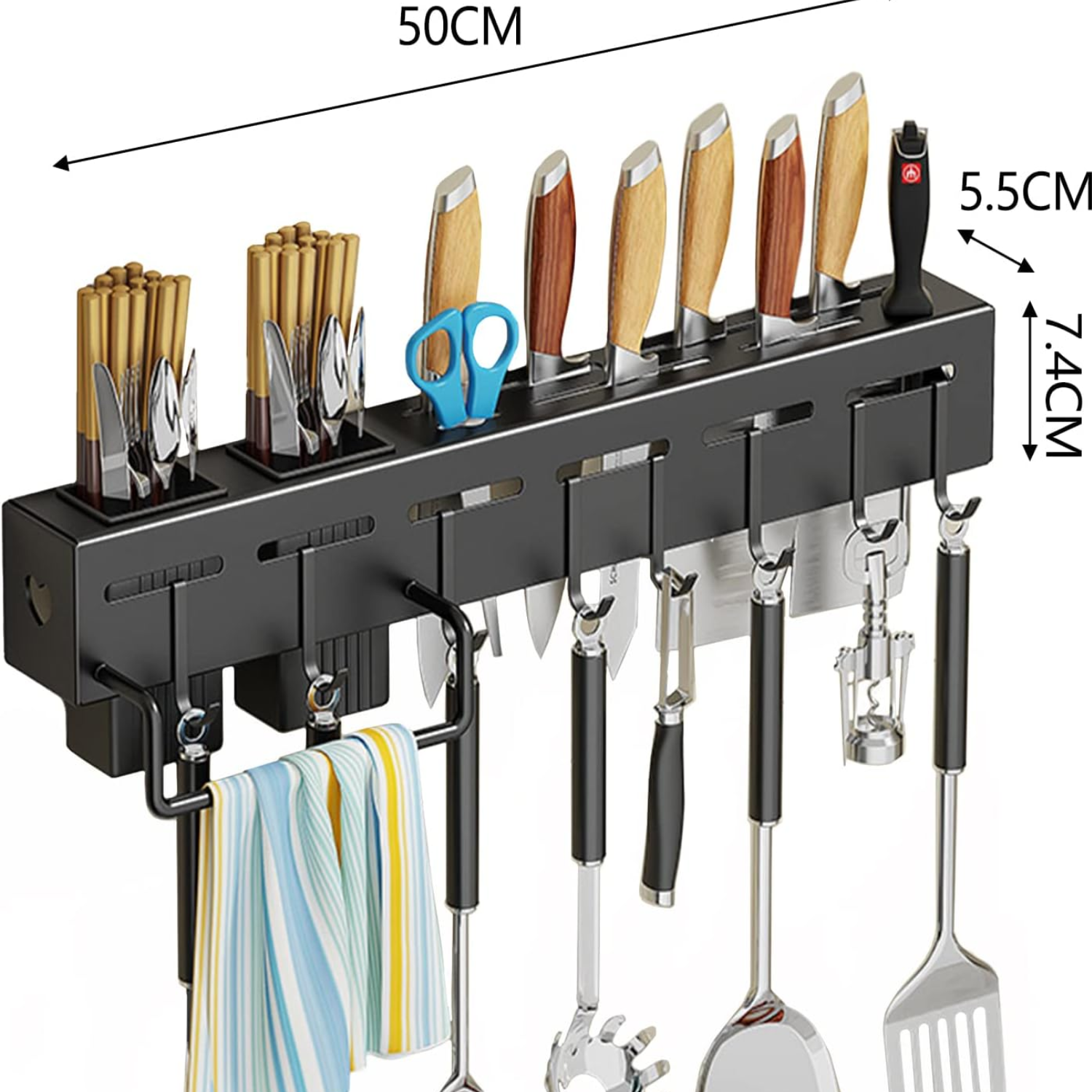 Mesurant 30/40/50 cm de longueur, ce porte-couteaux peut accueillir plusieurs ustensiles de cuisine tout en permettant d’économiser de l’espace dans votre cuisine. De plus, il est équipé de huit crochets amovibles qui vous permettront de ranger facilement vos autres outils non métalliques, tout en gardant votre espace de travail bien organisé. Trouvez facilement l’endroit idéal pour ranger ce porte-couteau peu encombrant et profitez d’une cuisine plus spacieuse.