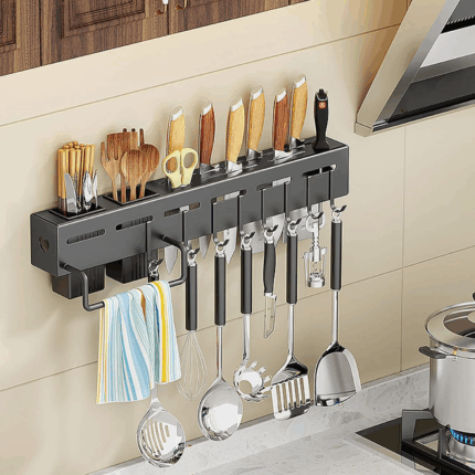- Contenu du produit:1 x porte-couteau 8 x crochets détachables 2 x boîte à couverts 1 x tige de chiffon 1 x Colle sans ongles 1 x Accessoires de vis