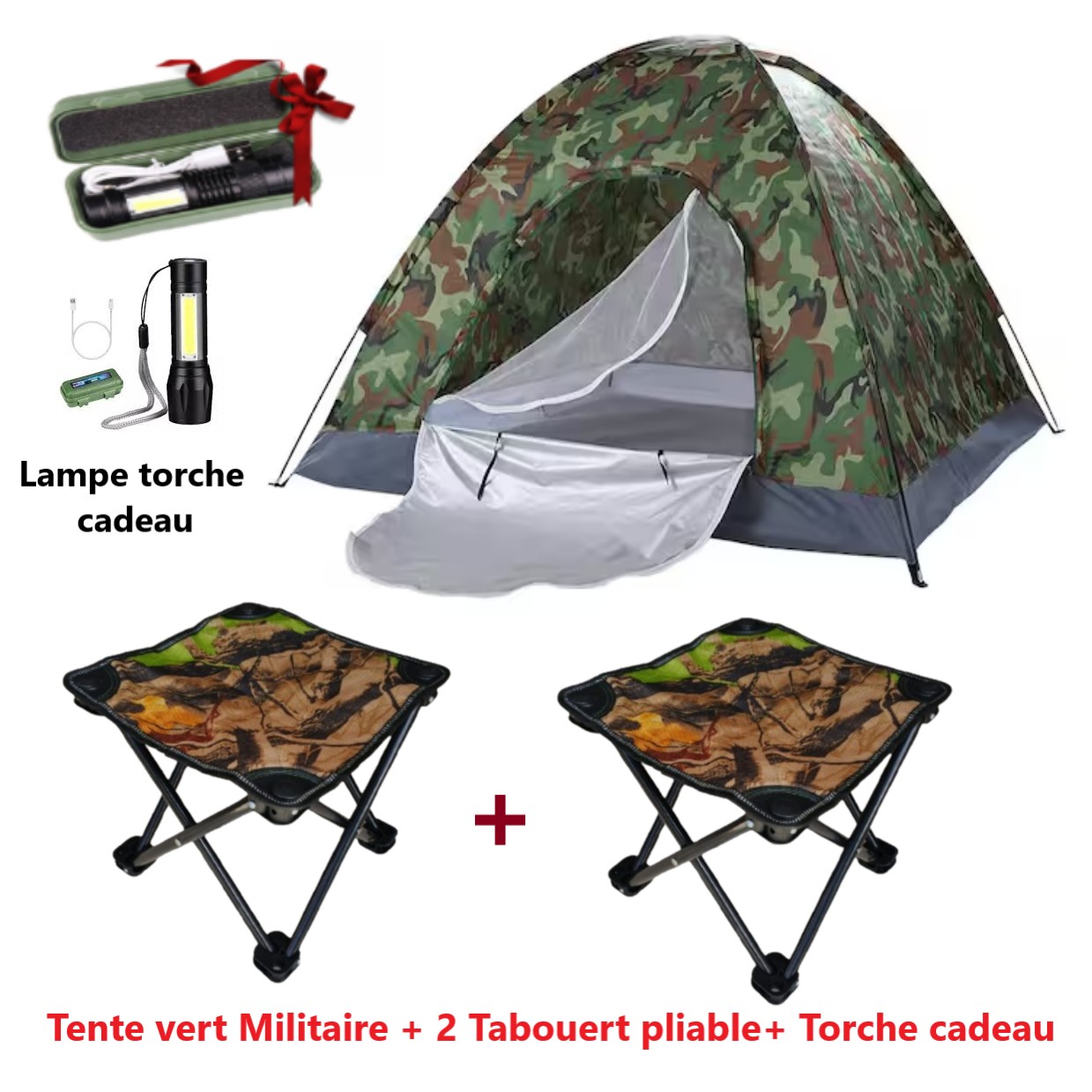 Tente militaire et 2 Tabourets camouflage avec torche lampe cadeau