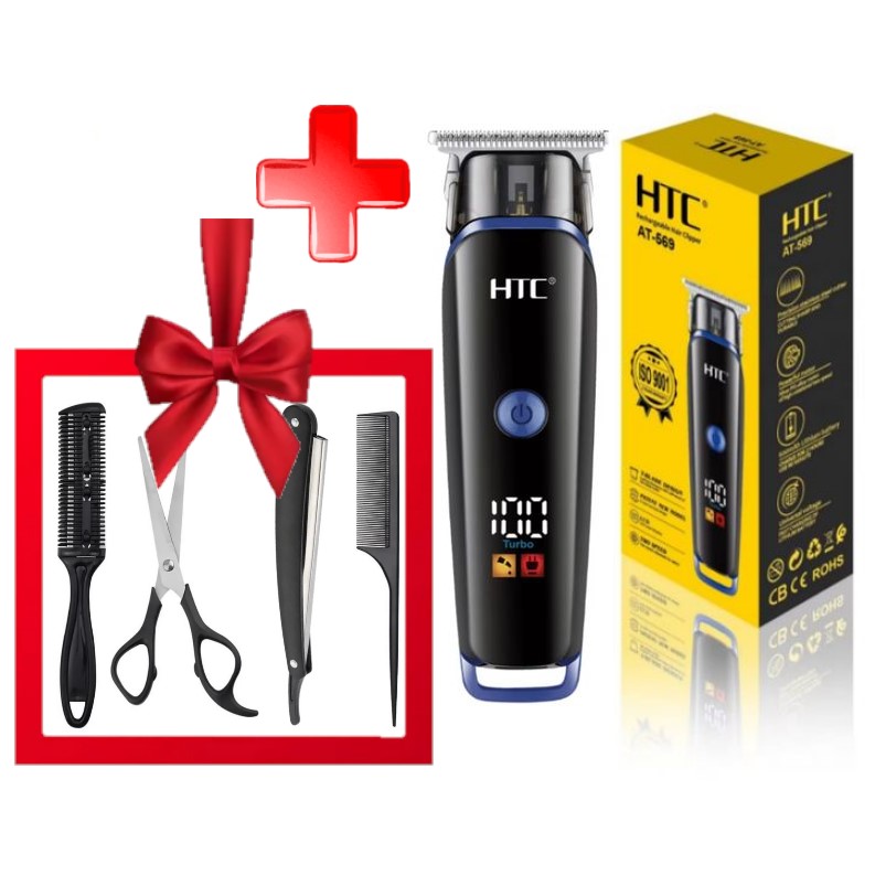 Tondeuse cheveux et barbe HTC AT 569 rechargeable + Kit de coiffure cadeau