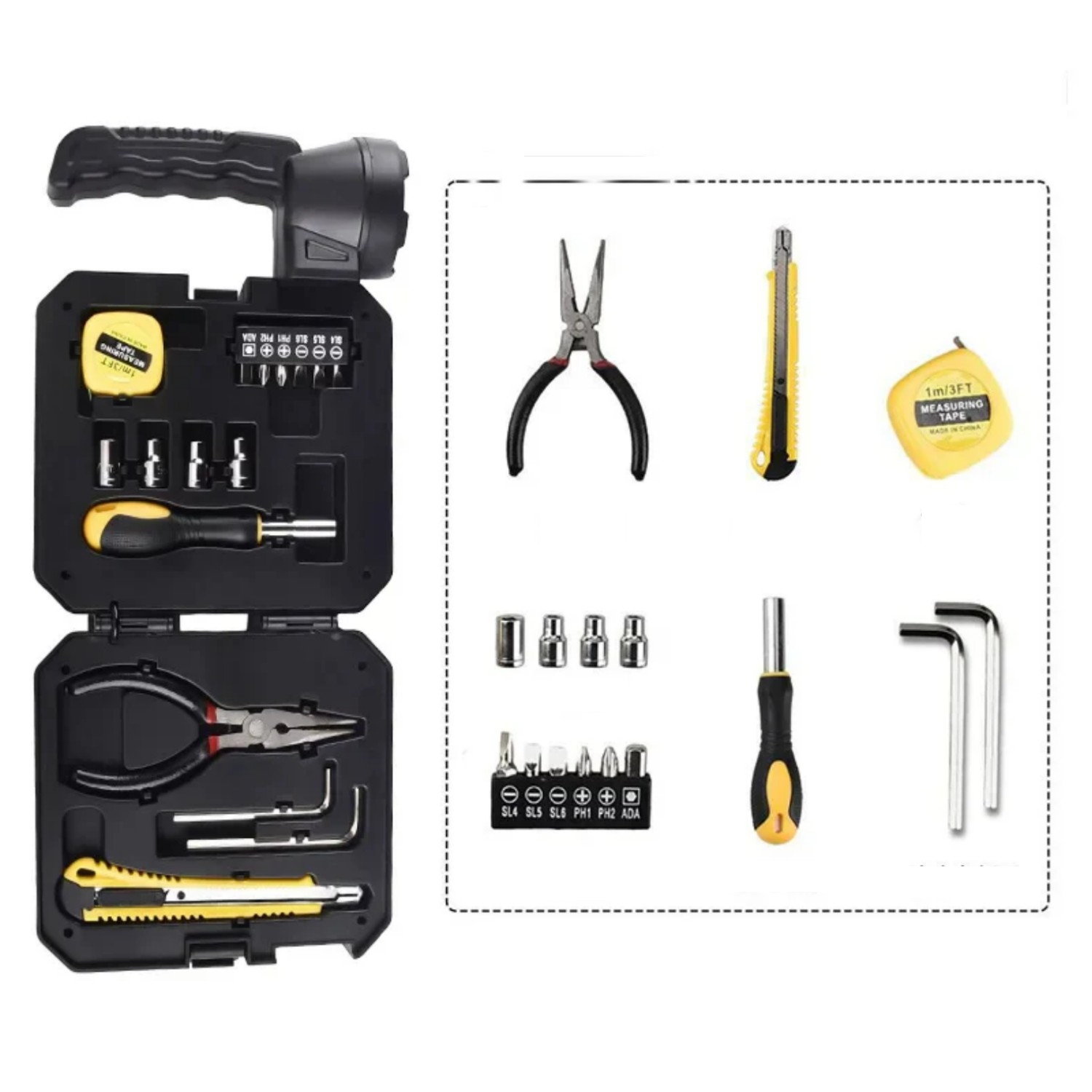 - Contenu de la trousse à outils : Tournevis, pinces, clés et plus encore. (11 pièces)