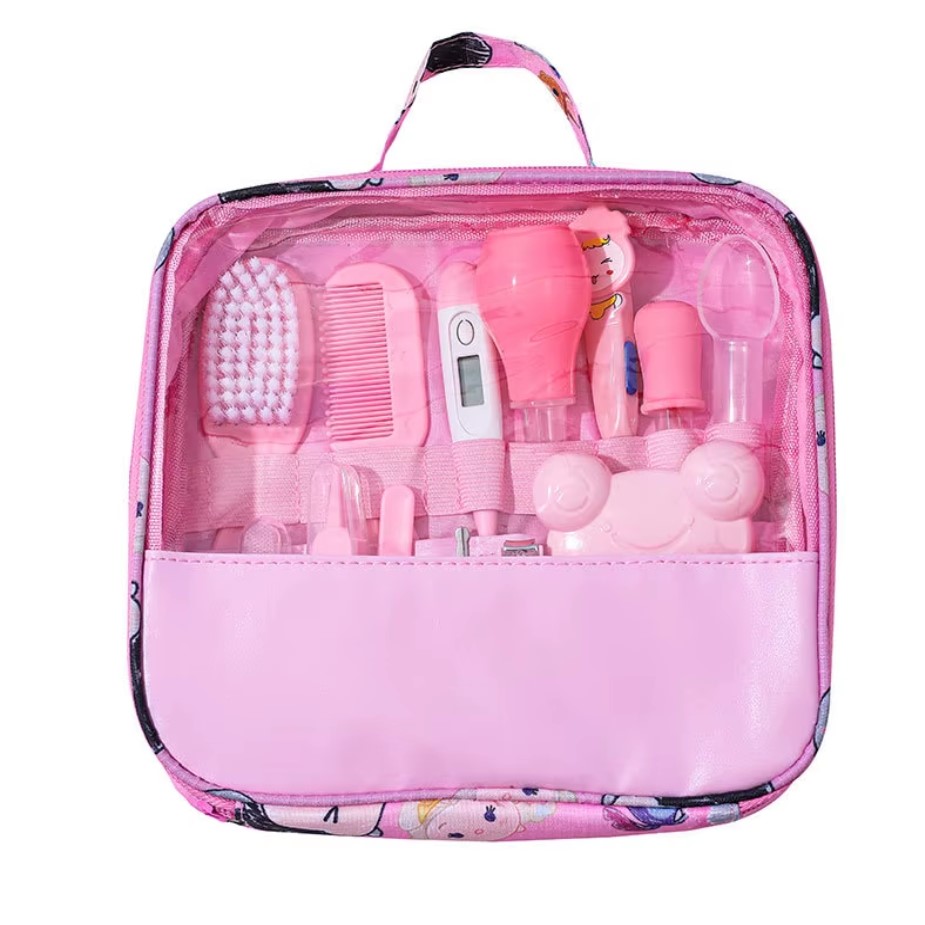 - Chaque parent souhaite le meilleur pour son enfant. Avec ce kit, vous avez tout à portée de main. Il comprend 13 accessoires essentiels pour assurer une hygiène parfaite à votre bébé. De la prise de température avec le thermomètre, au peignage délicat des cheveux fins de bébé, en passant par les soins buccaux avec la brosse à dents en silicone, chaque détail est pris en compte. De plus, son design compact le rend facile à transporter, que vous soyez à la maison ou en déplacement.