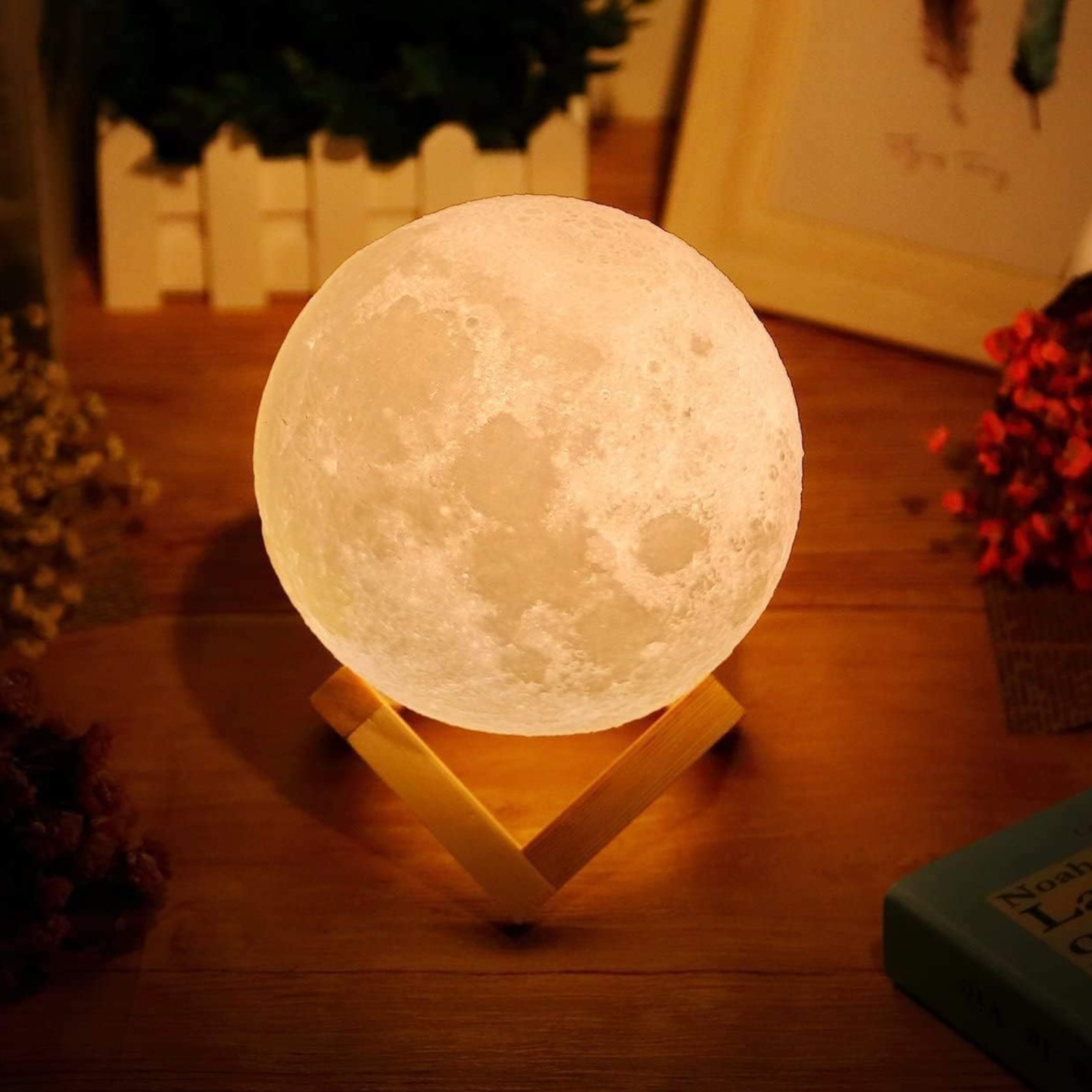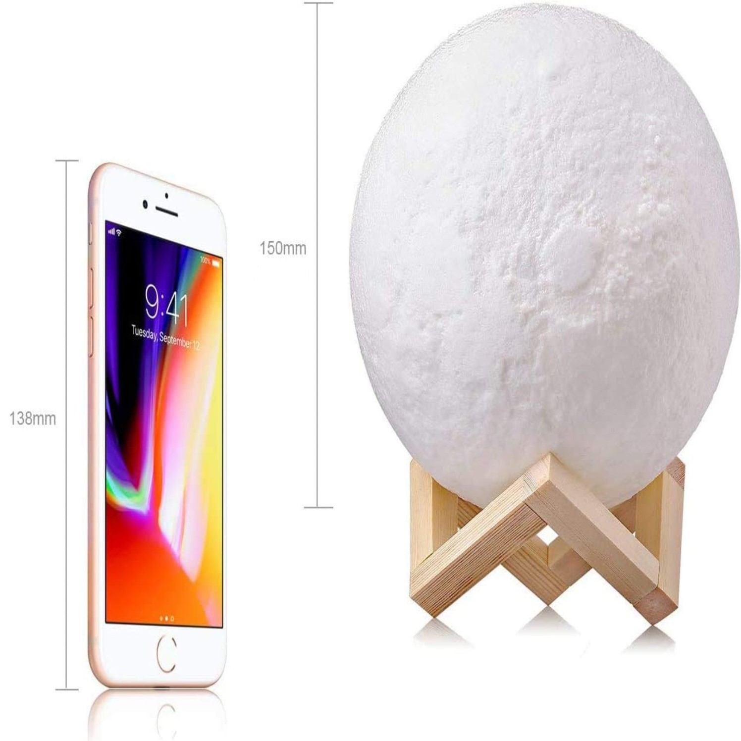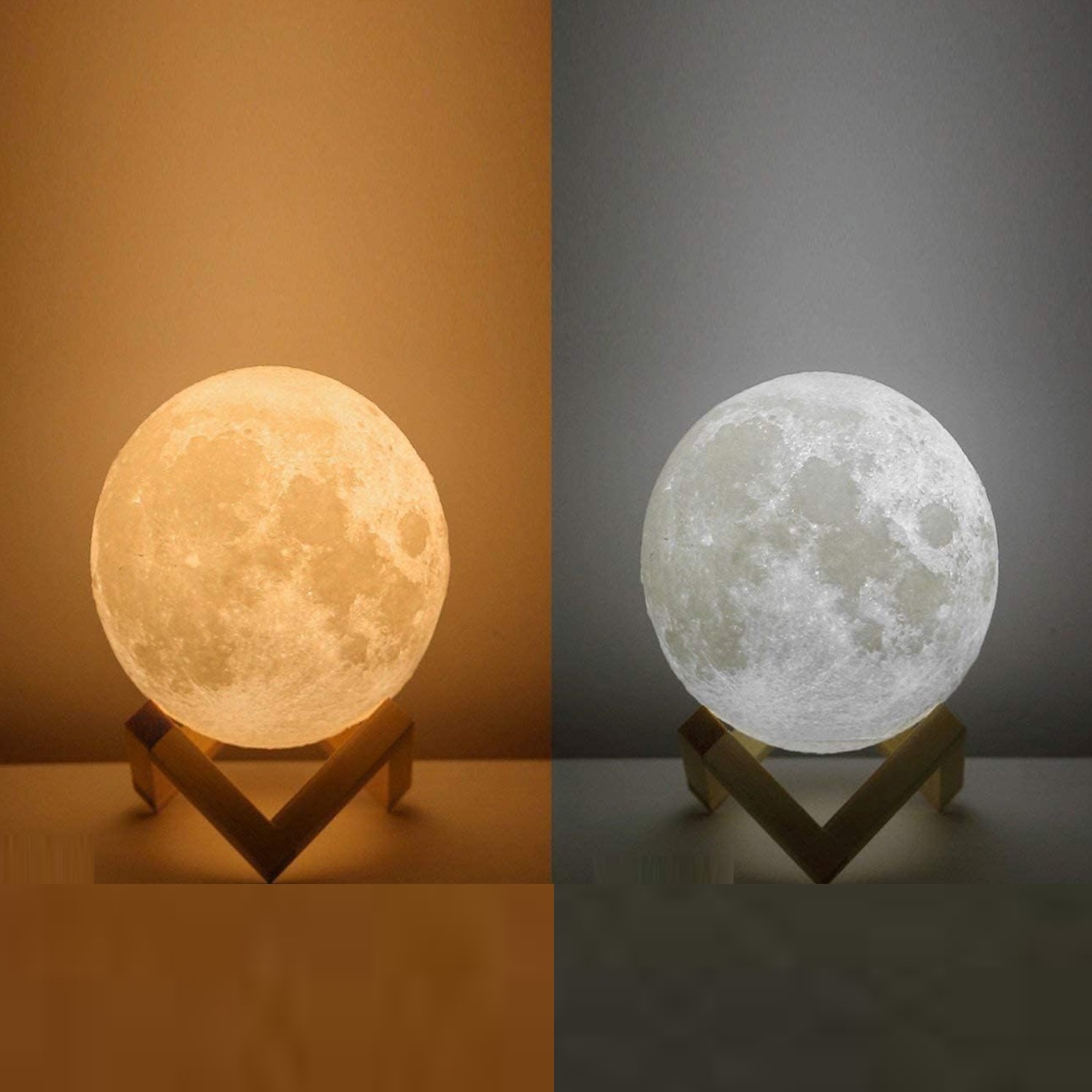 Vous pouvez régler la luminosité de la lumière luminosité par en appuyant sur le bouton sur le bas. Il dispose de deux lumières colorées : blanc chaud et froid. Ajoutez cette pièce délicate et complexe à votre bureau ou à votre chambre. Il diffuse une lumière douce qui illuminera votre pièce, brille comme la vraie lune, donnant de la lumière à votre monde.