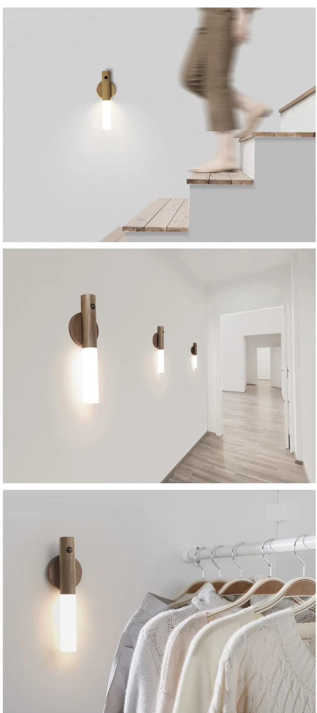Veilleuse murale LED magnétique sans fil rechargeable et portable à fixer au mur pour intérieur, escalier, chambre à coucher, couloir, escalier, veilleuse amovible (2, noyer noir)
