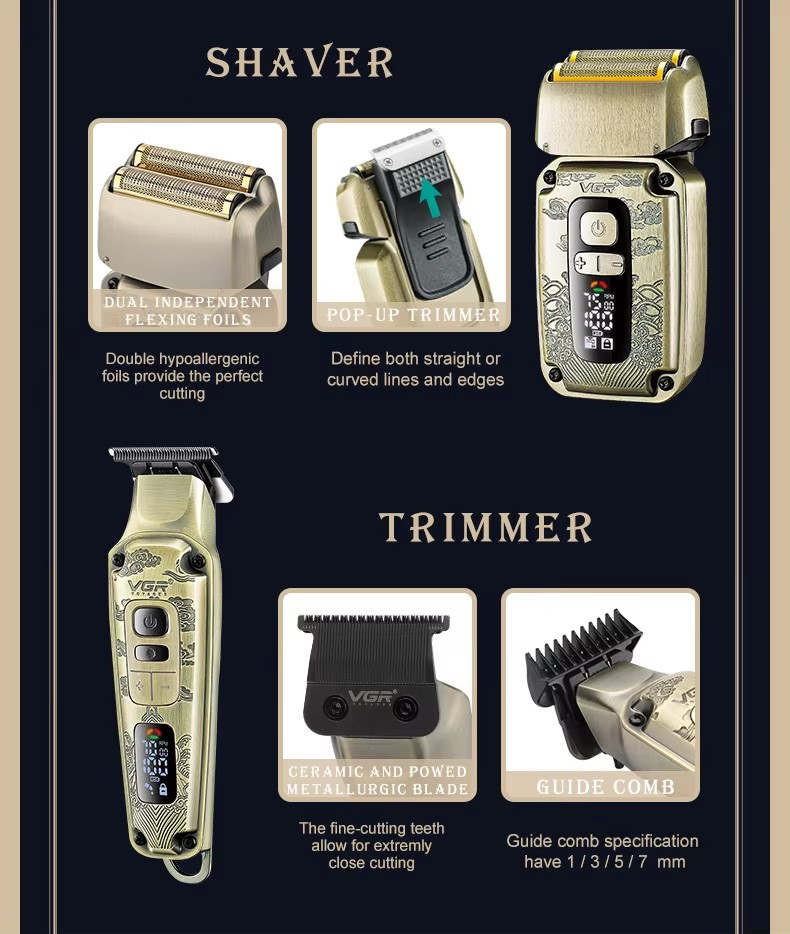 VGR V-641 2 en 1 tondeuse à cheveux professionnelle rasoir électrique tondeuse à barbe pour hommes tondeuse à cheveux de bord rasoir coupe cheveux machine