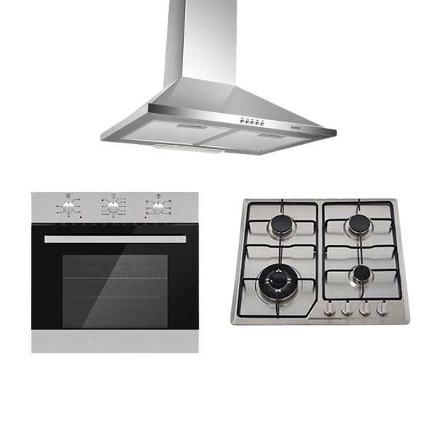 Pack AUXSTAR encastrable inox : four électrique + hotte 60 cm pyramidale + plaque 4 feux